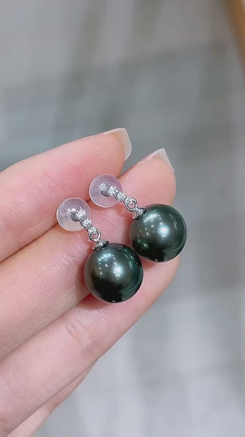 Discover the exquisite allure of our 18K Solid Gold Tahitian Pearl Drop Earrings, a truly captivating piece that marries nature's artistry with refined craftsmanship. Each earring features a perfectly round, 10mm Tahitian Black Pearl, renowned for its mesmerizing peacock green overtone and mirror-like luster. Complemented by the brilliant sparkle of a genuine Moissanite accent, these earrings are designed to drape gracefully, adding a touch of sophisticated glamour to any ensemble. Celebrate a milestone or indulge in a luxurious treat; these earrings are more than jewelry, they are an heirloom in the making.