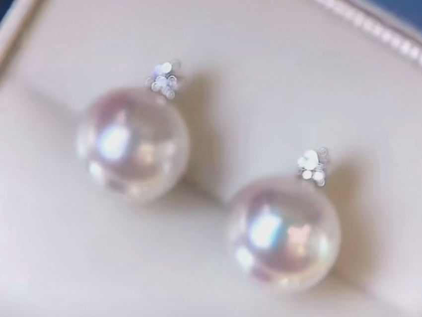 18K Solid Gold South Sea Pearl Stud Earrings | Real Diamond & White Australian Pearl (10-11mm) | Luxury Gift for Her